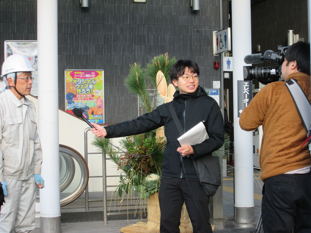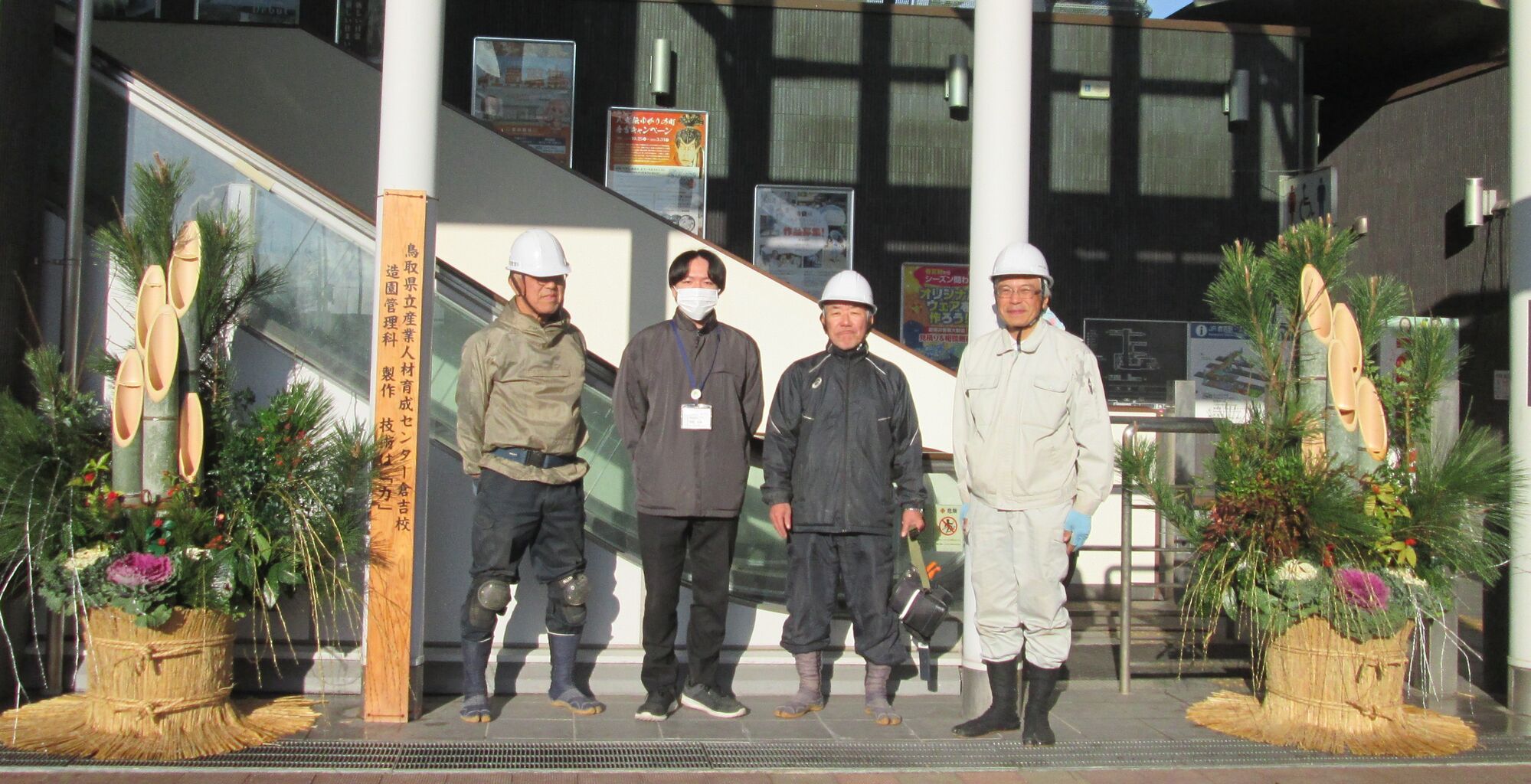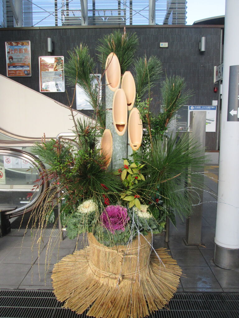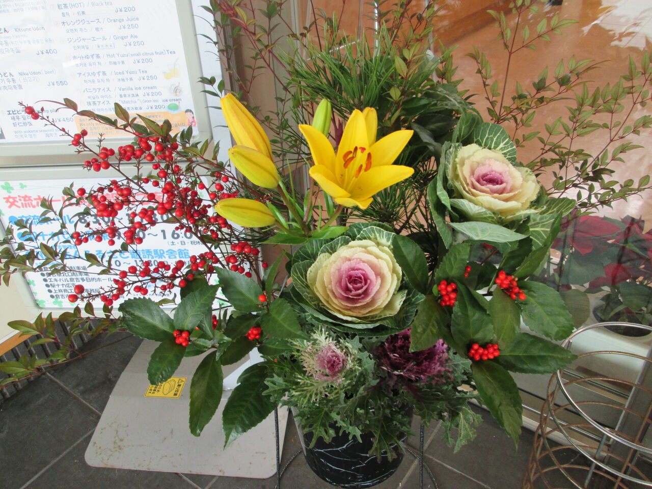 エキパル倉吉(倉吉駅ビル)2階交流ホール入口に飾ったお正月花