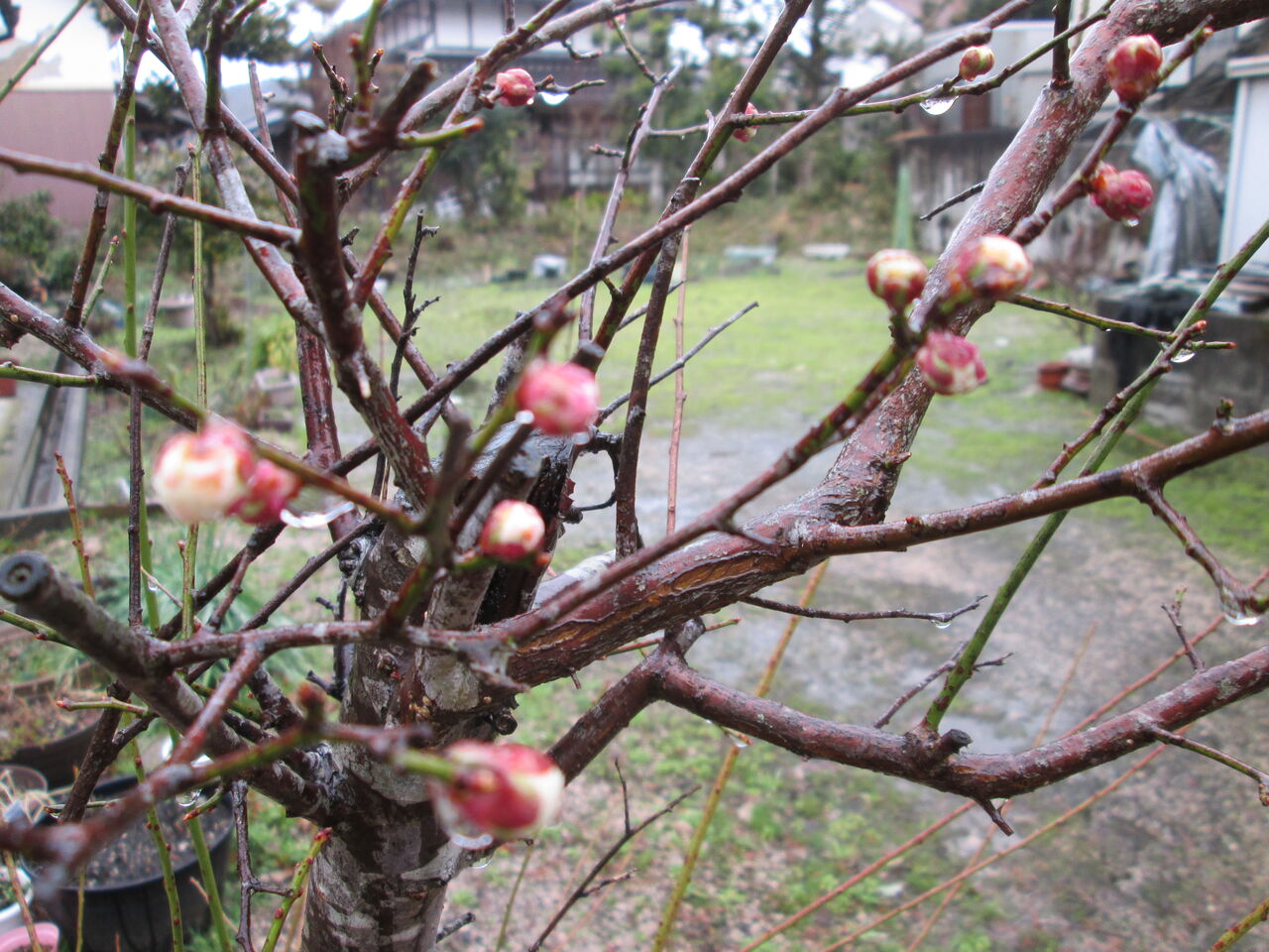 我が家の裏庭の梅も蕾が膨らんできました