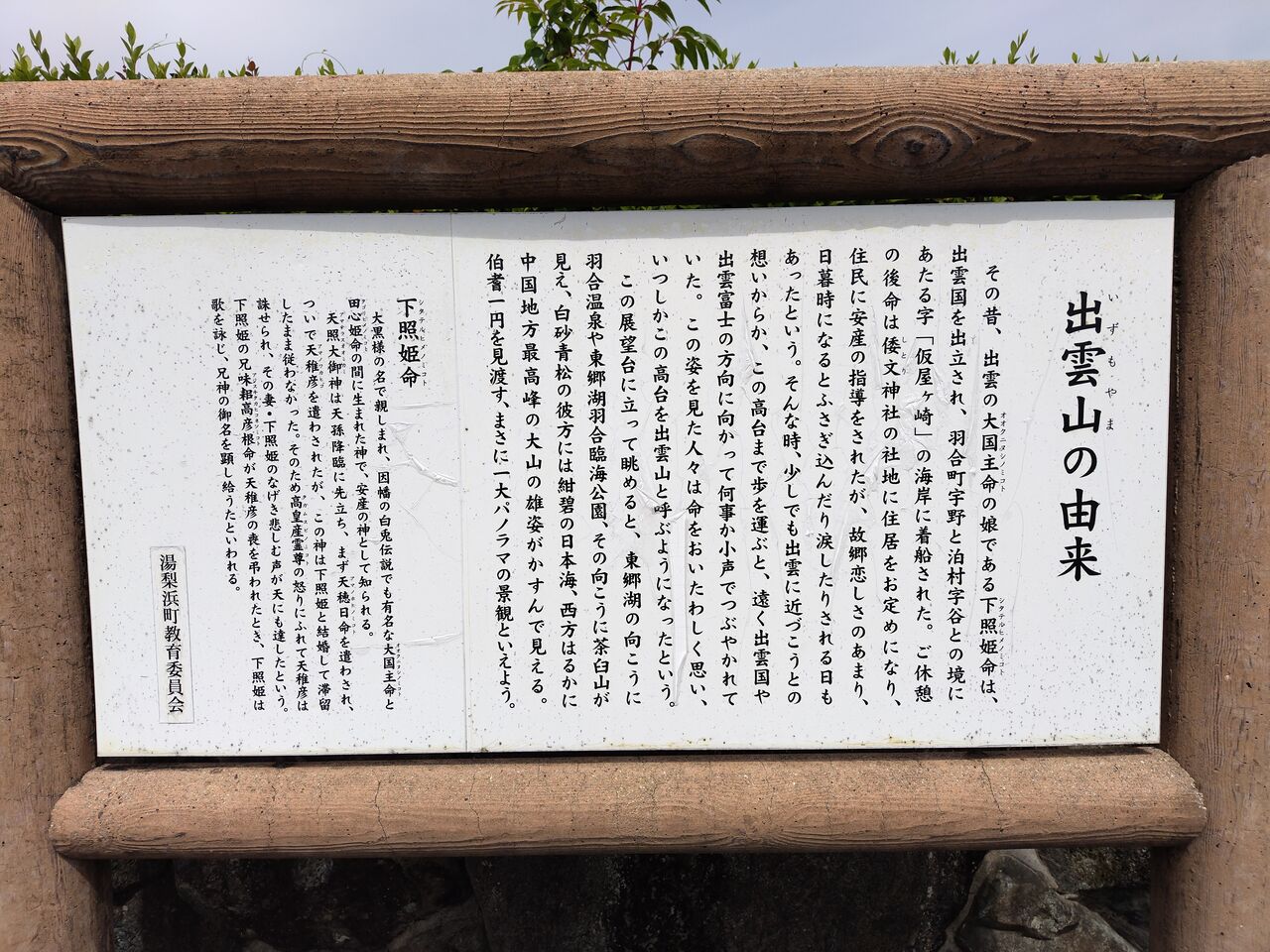 さて、湯梨浜町東郷湖沿いにある出雲山展望台